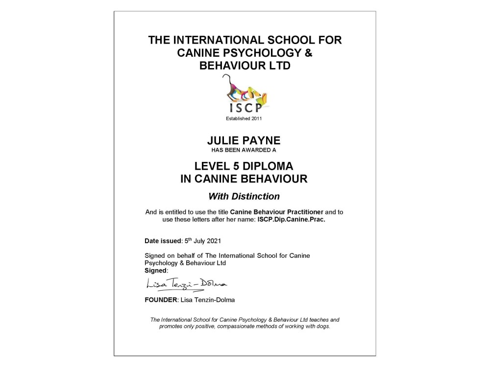 I am a qualified behaviourist with a Level 5 Diploma in Canine Behaviour with the International School for Canine Psychology and Behaviour (ISCP) and am an approved Dog Trainer with the Dog Training College. I work at Greyhound Rescue Wales part-time so have a wealth of experience with sighthounds and ex-racing dogs. However I work with all breeds and specialise in reactive and rescue dogs.